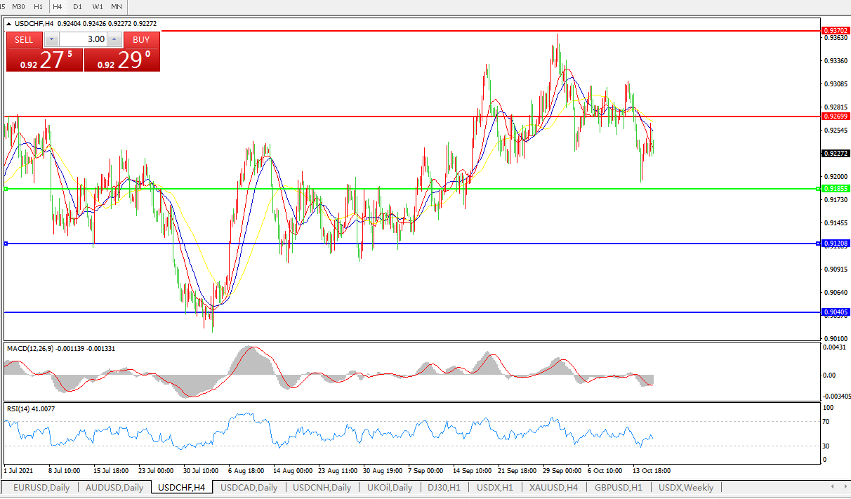 交易策略:0.9270下方看跌,目标0.9185、0.9120