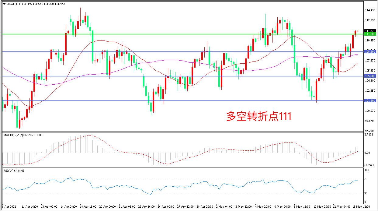 上周五(5月13日),根据三大机构月报显示,虽然有需求下行,经济数据不佳,但供需数据显示原油市场供应仍然紧张,布伦特原油大幅走高,收报111.47美元/桶。虽然需求预期持续下调,但供应端的风险仍是市场更加担心的因素,短期油价依然以上行为主。