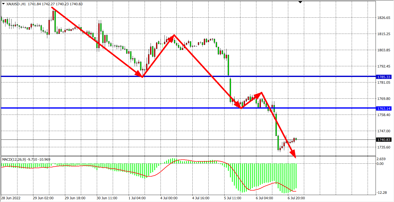 交易策略:在1763.00之下看跌,目标1730.00 1700.00