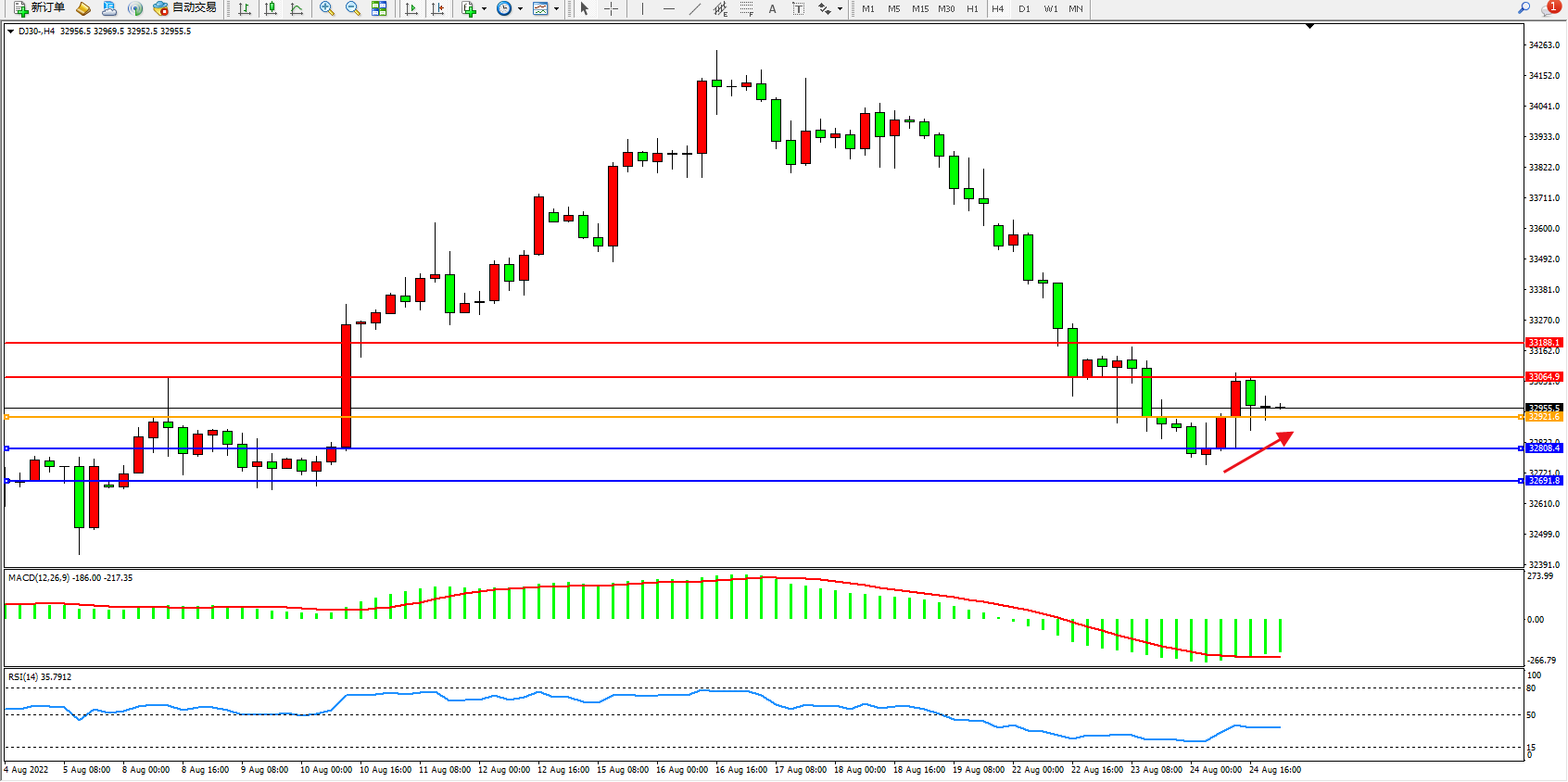 道琼斯指数8月24日(周三)收盘上涨61.12点,涨幅0.19%,报32970.71点;美国政府发布的初步报告称,美国7月份耐用品订单数量与上月基本持平,达到2735亿美元。7月耐用品制造业发货量较6月上升0.4%,总值2705亿元。