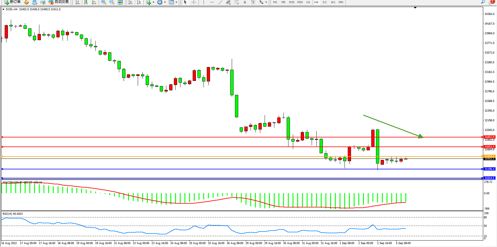 周一美國紐約交易所勞動節,休市一日。道琼斯指数9月2日(周五)收盘下跌337.58点,跌幅1.07%,报31318.84点;美国8月失业率上升,但无法从根本上撼动美联储大幅加息策略。美国面临劳工供给减少永久化,实现通胀正常化任重道远。