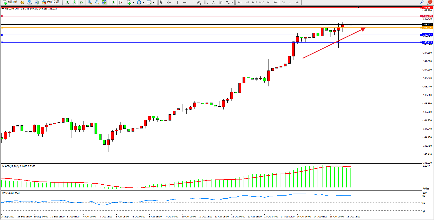 4小时图看:多头动力维持高位缓慢上行,短期看涨情绪持续,市场多头动力有继续向上移动态势,MACD指标处于多头区域高位徘徊,RSI指标处于超买区80均衡线附近弱势整理;