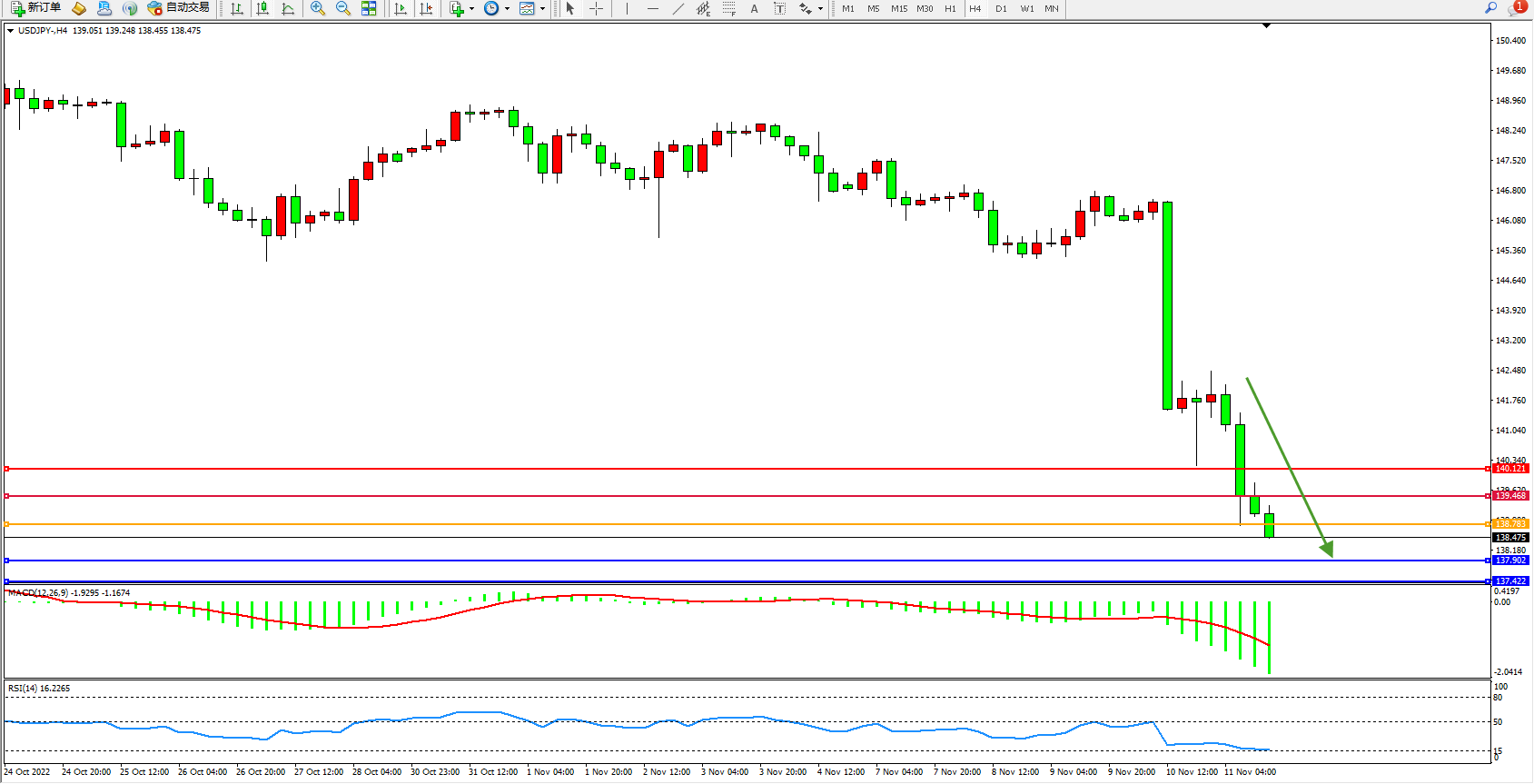 4小时图看:空头动力急速下挫后,低位持续下探,短期跌势未见止步,市场空头情绪态势良好,MACD指标处于空头区域低位弱势下行,RSI指标处于空头区域超卖区15均衡线附近徘徊;