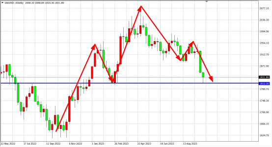 周五(10月6日)美国9月非农数据意外“爆表”,创下今年年初以来的最大增幅,表明劳动力市场强劲,强劲的就业数据引发对美国再次加息的担忧,由于利好出尽,美元冲高回落,金价强势反弹,但本周仍以收跌结束。